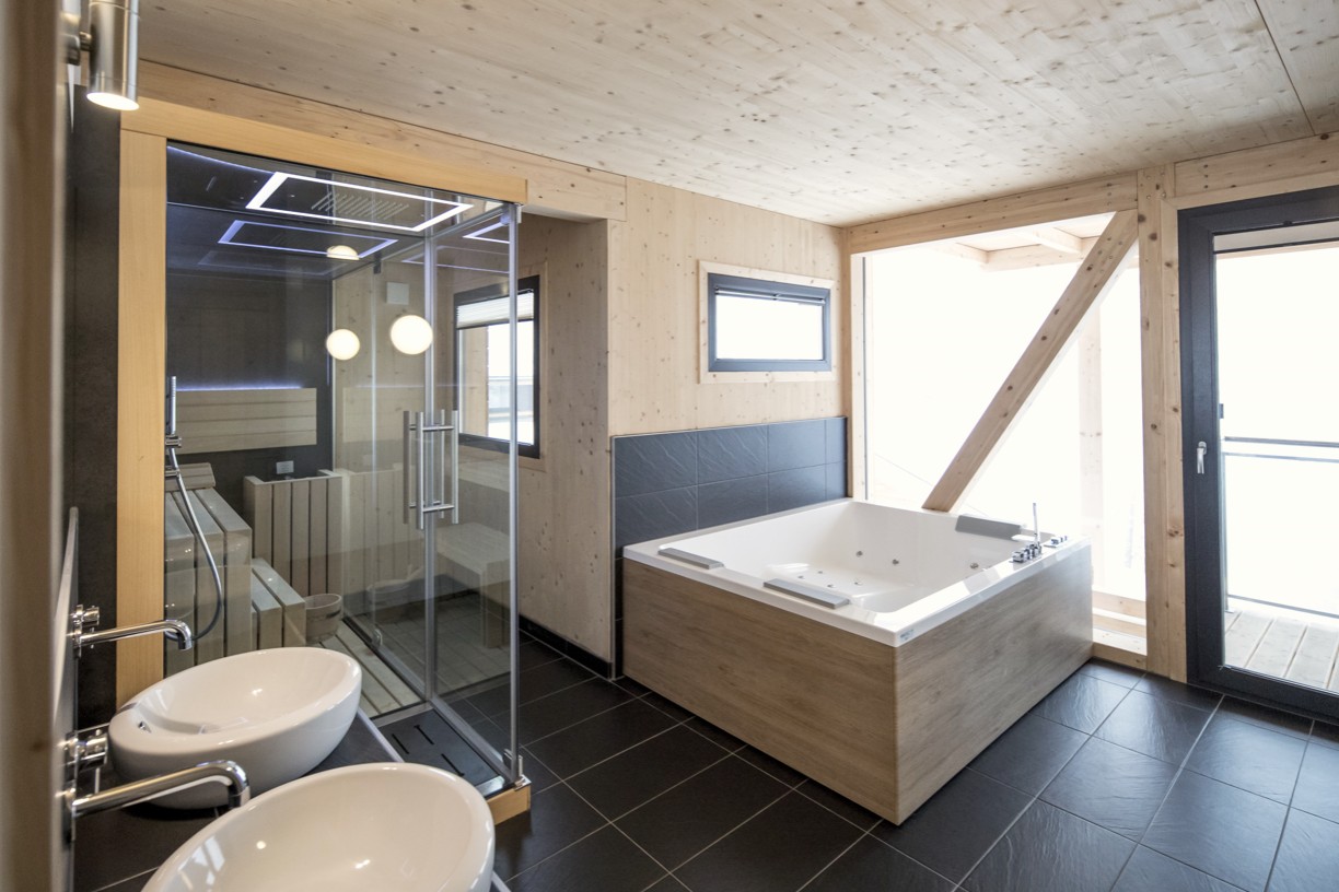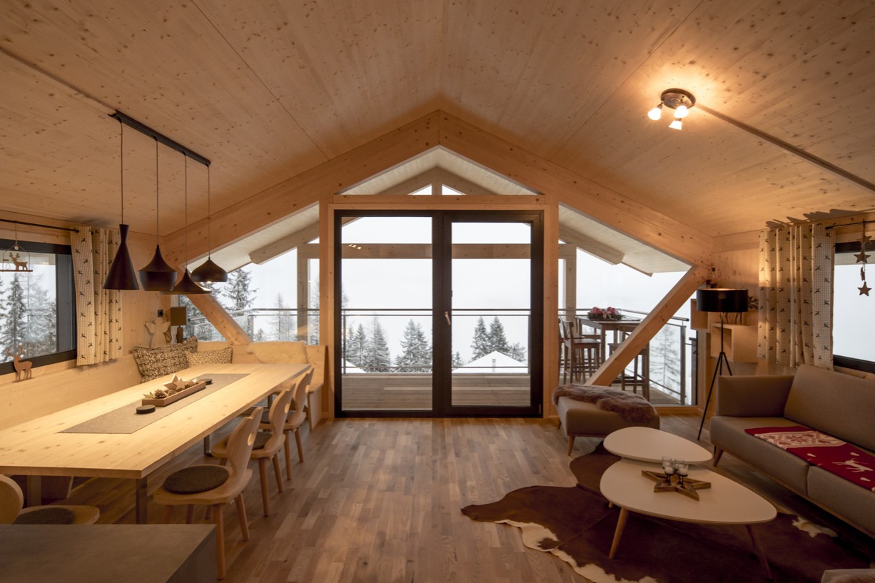 Auf 1.180 m Seehöhe befinden sich 12 luxuriös ausgestattete Wellnesschalets.